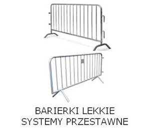 Barierka lekka przestawna 2m x 1,20m, waga około 20kg. Charakteryzuje się stabilną konstrukcją oraz dużą wytrzymałością. Jest idealna do wygradzania parkingów, boków sceny i ogródków piwnych. Znajduje zastosowanie przy organizacji imprez motoryzacyjnych oraz biegów ulicznych. Konstrukcja barierki pozwala na ustawienie ich nawet w bardzo nierównym terenie z zachowaniem pełnych właściwości zabezpieczających. Zastosowany system łączenia uniemożliwia rozpięcie barierek osobom niepowołanym