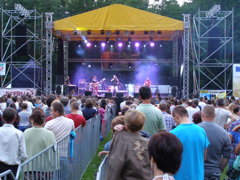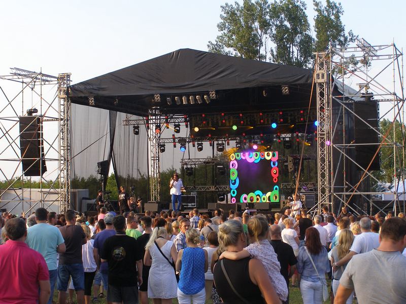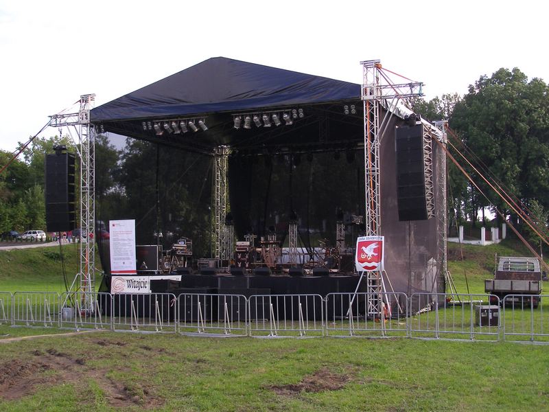 Zaprojektowana na średnie imprezy i koncerty plenerowe. Zadaszenie dwuspadowe w kolorze czarnym, jest świetną alternatywą dla wszystkich, którzy mają w planach organizację imprezy pod gołym niebem, Zapraszamy do wypożyczania kopletnych zestawów scen, kilka foto z realizacji scenicznych poniżej