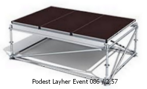 Podest ev86 to stabilny zestaw konstrukcyjny, dzięki któremu można zbudować małe podium na pokazy mody, zespoły muzyczne lub ogromną scenę koncertową. Wszystkie części są odporne na warunki atmosferyczne dzięki zastosowaniu aluminium, stali ocynkowanej ogniowo i powlekanych paneli ze sklejki antypoślizgowej. System ramki pod podesty 2,57 X 2,57m oraz 1,28m, Budujemy również podłogi oparte na rusztowniu, dźwigar peri i sklejkę antypoślizgową - docinamy na wymiar. Dostępne 1000m2 podłogi na PERI